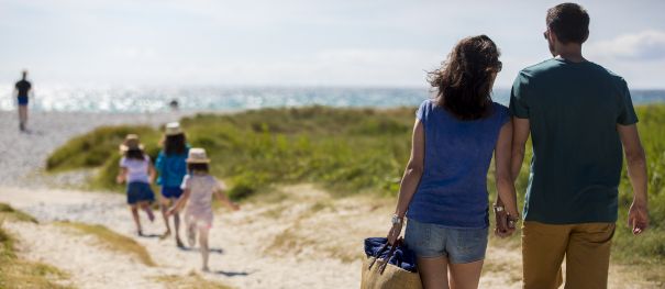 Il se trouve à 50m en face du camping, entre l'entrée principale et la plage de Kervillen.