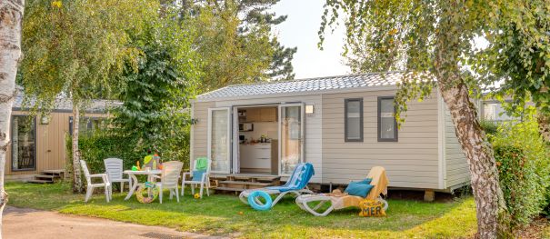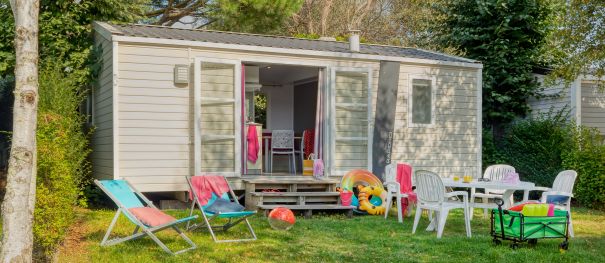 Idéal pour un séjour à deux ou pour les familles avec jeunes enfants, chaque modèle dispose de deux chambres, d'une cuisine équipée, d'une salle de bain fonctionnelle, ainsi que d'un espace extérieur aménagé avec salon de jardin, parasol et relax.
